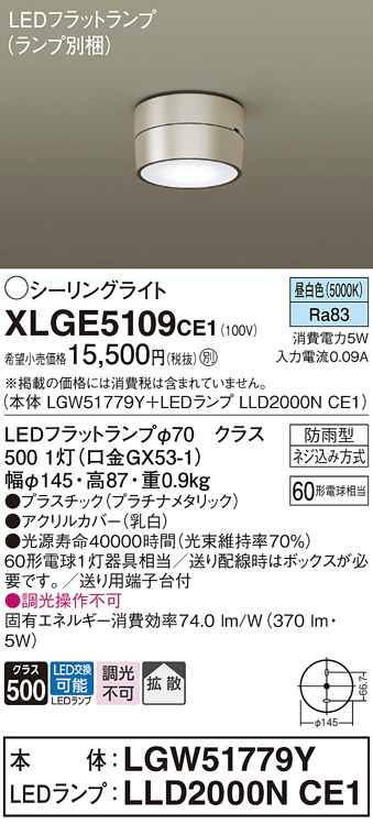 Panasonic ¥¨¥¯¥¹¥Æ¥ê¥¢¥é¥¤¥È XLGE5109CE1