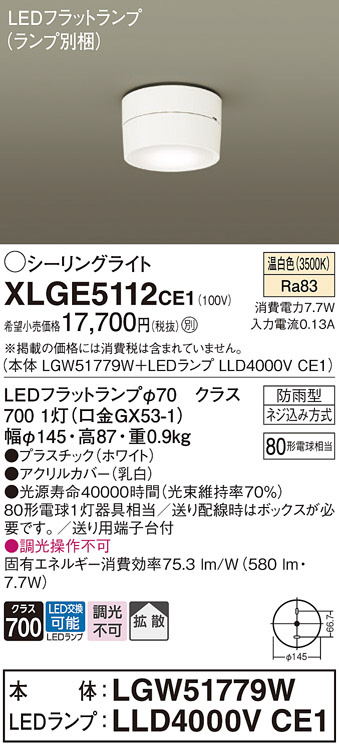 Panasonic ¥¨¥¯¥¹¥Æ¥ê¥¢¥é¥¤¥È XLGE5112CE1