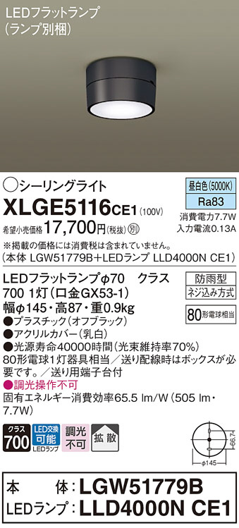 Panasonic ¥¨¥¯¥¹¥Æ¥ê¥¢¥é¥¤¥È XLGE5116CE1