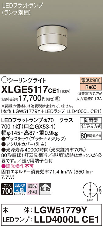 Panasonic ¥¨¥¯¥¹¥Æ¥ê¥¢¥é¥¤¥È XLGE5117CE1