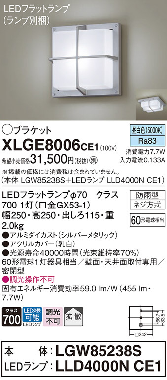Panasonic ¥¨¥¯¥¹¥Æ¥ê¥¢¥é¥¤¥È XLGE8006CE1