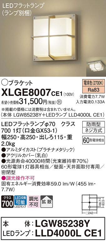 Panasonic ¥¨¥¯¥¹¥Æ¥ê¥¢¥é¥¤¥È XLGE8007CE1