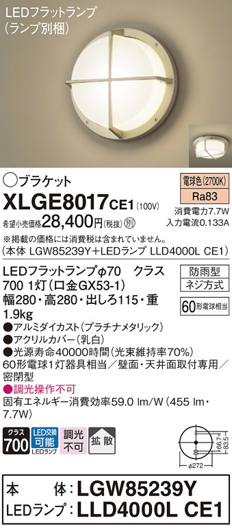 Panasonic ¥¨¥¯¥¹¥Æ¥ê¥¢¥é¥¤¥È XLGE8017CE1