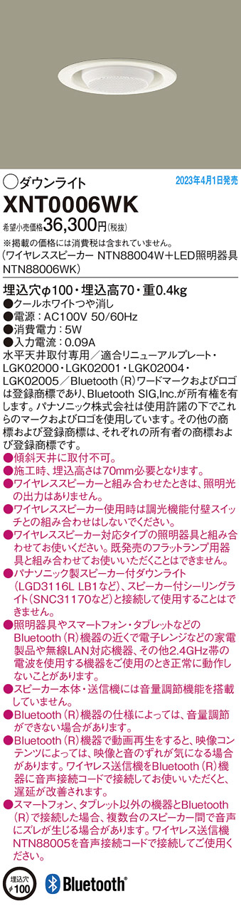 Panasonic ¥À¥¦¥ó¥é¥¤¥È XNT0006WK