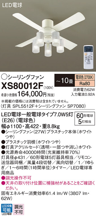 Panasonic ¥·¡¼¥ê¥ó¥°¥Õ¥¡¥ó XS80012F