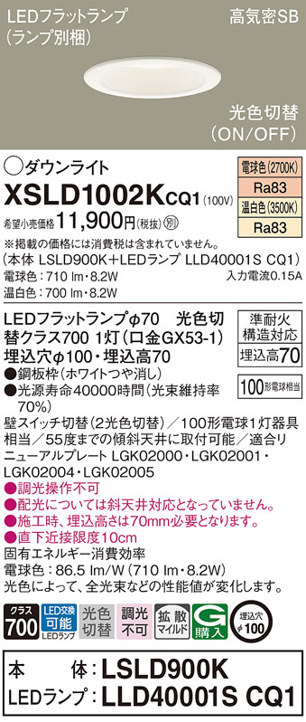 Panasonic ¥À¥¦¥ó¥é¥¤¥È XSLD1002KCQ1