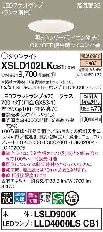 Panasonic ¥À¥¦¥ó¥é¥¤¥È XSLD102LKCB1