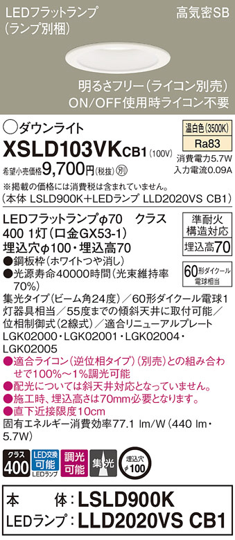 Panasonic ¥À¥¦¥ó¥é¥¤¥È XSLD103VKCB1