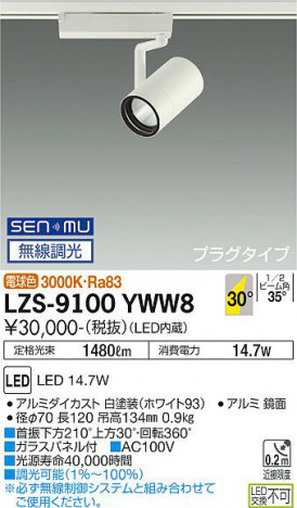 DAIKO Âç¸÷Åŵ¡ ¥¹¥Ý¥Ã¥È¥é¥¤¥È LZS-9100YWW8