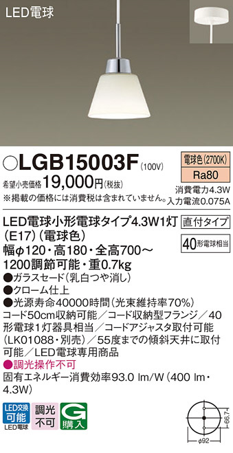 Panasonic ¥Ú¥ó¥À¥ó¥È¥é¥¤¥È LGB15003F