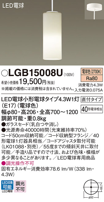 Panasonic ¥Ú¥ó¥À¥ó¥È¥é¥¤¥È LGB15008U