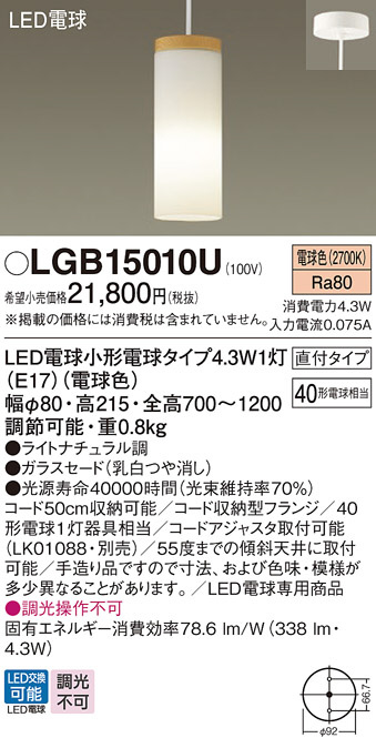 Panasonic ¥Ú¥ó¥À¥ó¥È¥é¥¤¥È LGB15010U