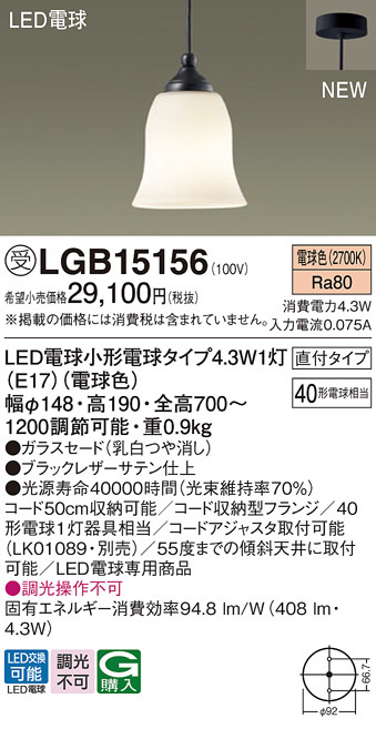 Panasonic ¥Ú¥ó¥À¥ó¥È¥é¥¤¥È LGB15156