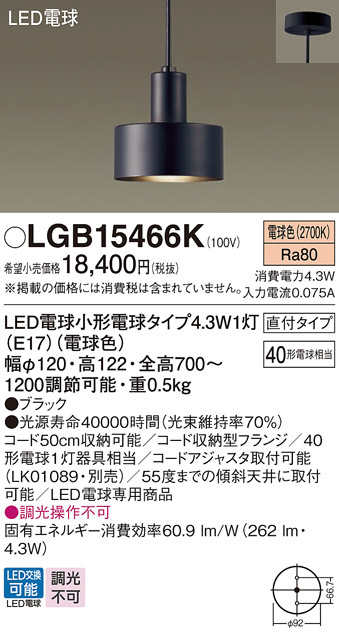 Panasonic ¥Ú¥ó¥À¥ó¥È¥é¥¤¥È LGB15466K