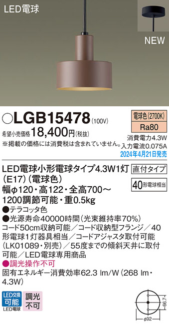 Panasonic ¥Ú¥ó¥À¥ó¥È¥é¥¤¥È LGB15478