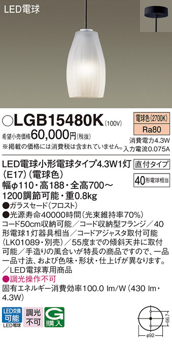 Panasonic ¥Ú¥ó¥À¥ó¥È¥é¥¤¥È LGB15480K