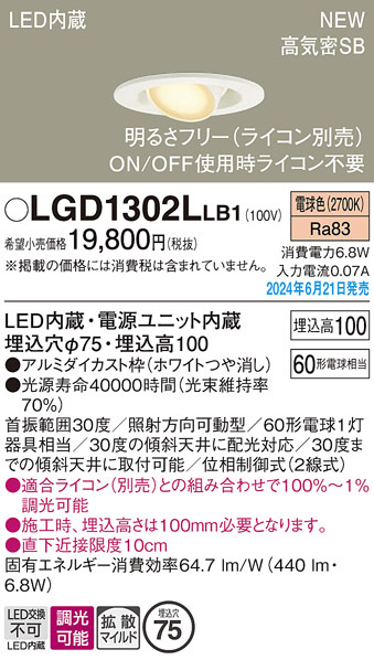 Panasonic ¥À¥¦¥ó¥é¥¤¥È LGD1302LLB1