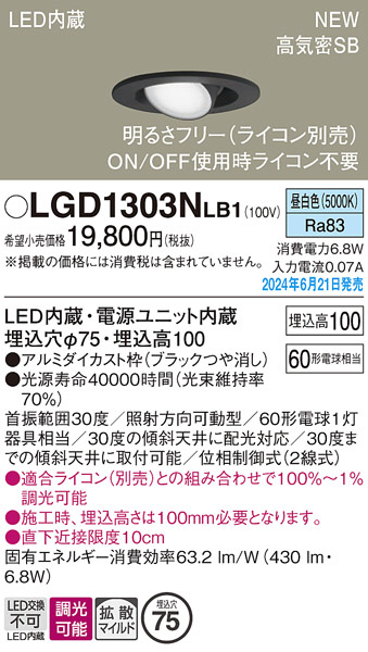 Panasonic ¥À¥¦¥ó¥é¥¤¥È LGD1303NLB1