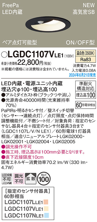 Panasonic ¥À¥¦¥ó¥é¥¤¥È LGDC1107VLE1