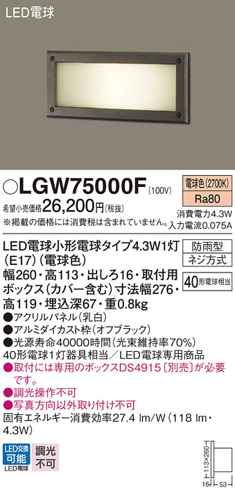 Panasonic ¥¨¥¯¥¹¥Æ¥ê¥¢¡¦¥¢¥¦¥È¥É¥¢ LGW75000F