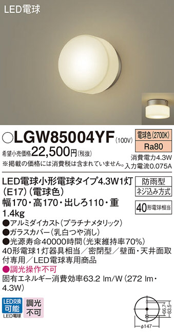 Panasonic ¥¨¥¯¥¹¥Æ¥ê¥¢¡¦¥¢¥¦¥È¥É¥¢ LGW85004YF