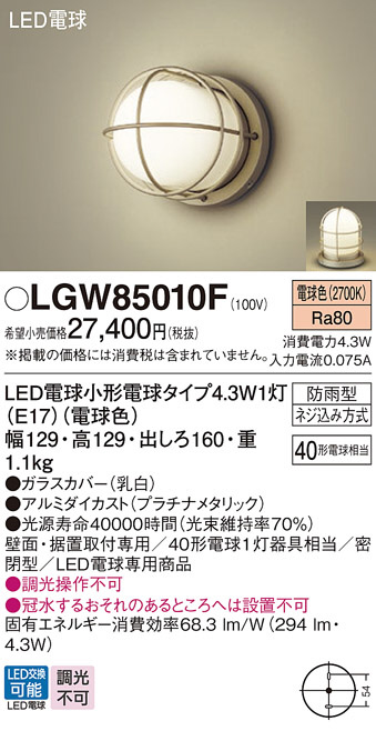 Panasonic ¥¨¥¯¥¹¥Æ¥ê¥¢¡¦¥¢¥¦¥È¥É¥¢ LGW85010F