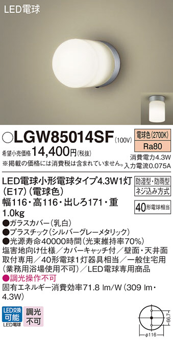 Panasonic ¥¨¥¯¥¹¥Æ¥ê¥¢¡¦¥¢¥¦¥È¥É¥¢ LGW85014SF