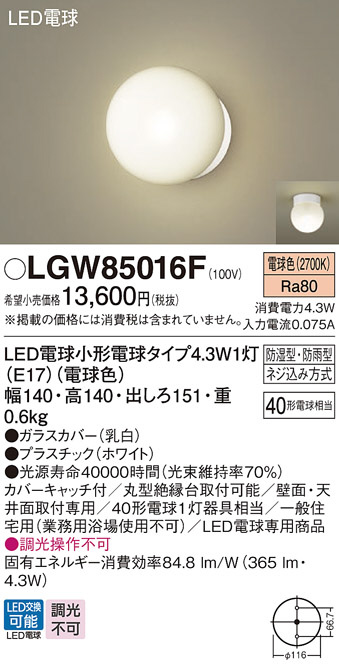 Panasonic ¥¨¥¯¥¹¥Æ¥ê¥¢¡¦¥¢¥¦¥È¥É¥¢ LGW85016F