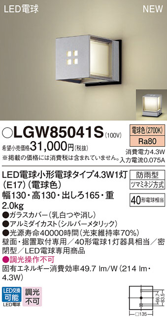 Panasonic ¥¨¥¯¥¹¥Æ¥ê¥¢¡¦¥¢¥¦¥È¥É¥¢ LGW85041S