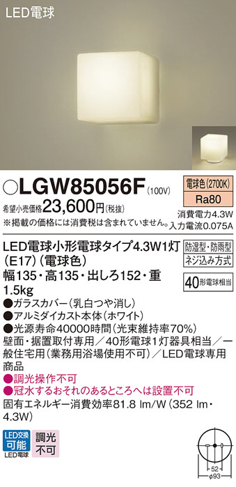 Panasonic ¥¨¥¯¥¹¥Æ¥ê¥¢¡¦¥¢¥¦¥È¥É¥¢ LGW85056F