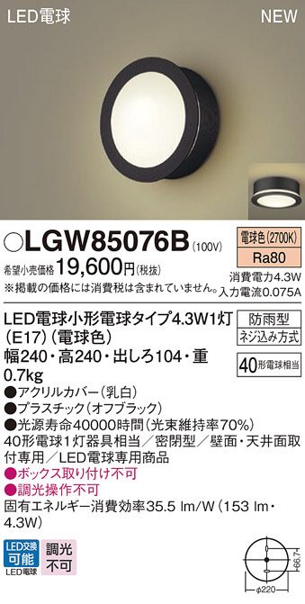 Panasonic ¥¨¥¯¥¹¥Æ¥ê¥¢¡¦¥¢¥¦¥È¥É¥¢ LGW85076B
