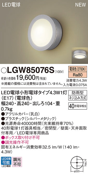 Panasonic ¥¨¥¯¥¹¥Æ¥ê¥¢¡¦¥¢¥¦¥È¥É¥¢ LGW85076S
