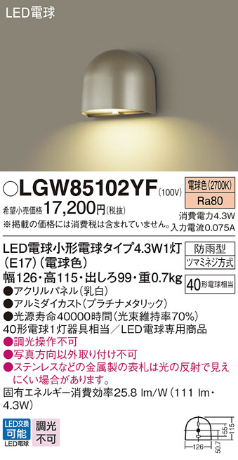 Panasonic ¥¨¥¯¥¹¥Æ¥ê¥¢¡¦¥¢¥¦¥È¥É¥¢ LGW85102YF