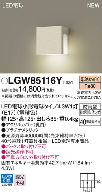 Panasonic ¥¨¥¯¥¹¥Æ¥ê¥¢¡¦¥¢¥¦¥È¥É¥¢ LGW85116Y