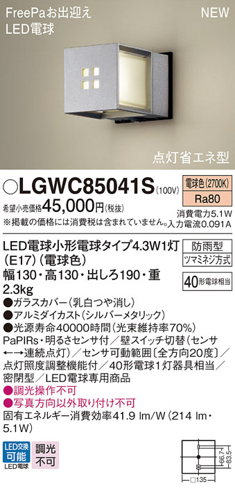 Panasonic ¥¨¥¯¥¹¥Æ¥ê¥¢¡¦¥¢¥¦¥È¥É¥¢ LGWC85041S