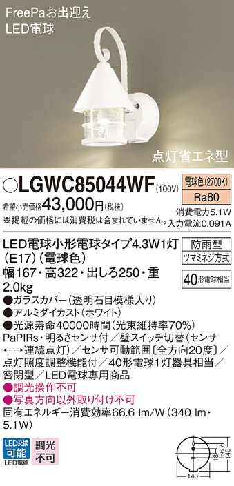 Panasonic ¥¨¥¯¥¹¥Æ¥ê¥¢¡¦¥¢¥¦¥È¥É¥¢ LGWC85044WF