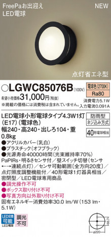 Panasonic ¥¨¥¯¥¹¥Æ¥ê¥¢¡¦¥¢¥¦¥È¥É¥¢ LGWC85076B