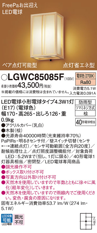 Panasonic ¥¨¥¯¥¹¥Æ¥ê¥¢¡¦¥¢¥¦¥È¥É¥¢ LGWC85085F