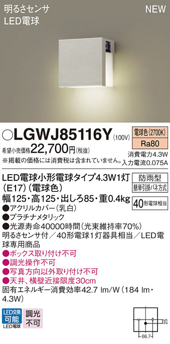 Panasonic ¥¨¥¯¥¹¥Æ¥ê¥¢¡¦¥¢¥¦¥È¥É¥¢ LGWJ85116Y