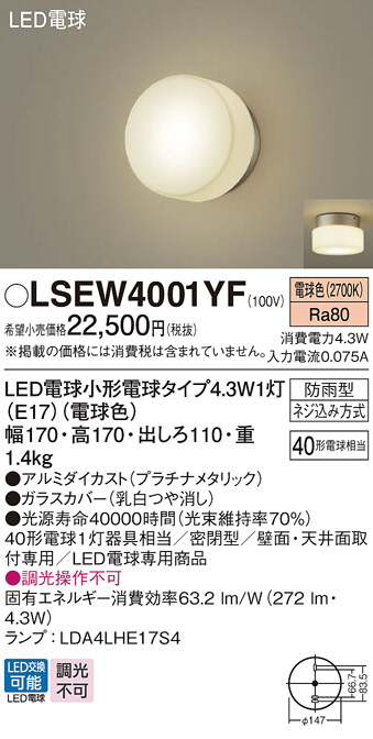 Panasonic ¥¨¥¯¥¹¥Æ¥ê¥¢¡¦¥¢¥¦¥È¥É¥¢ LSEW4001YF