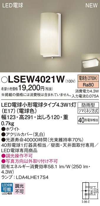 Panasonic ¥¨¥¯¥¹¥Æ¥ê¥¢¡¦¥¢¥¦¥È¥É¥¢ LSEW4021W