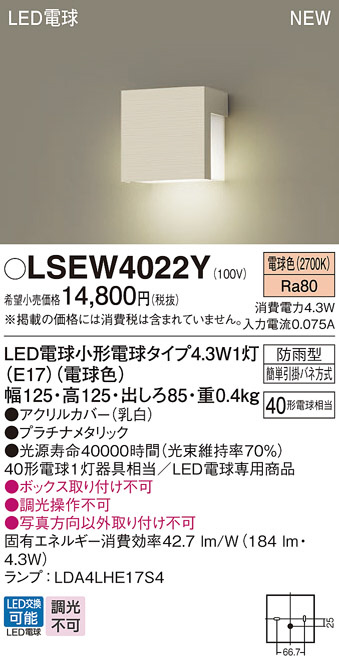 Panasonic ¥¨¥¯¥¹¥Æ¥ê¥¢¡¦¥¢¥¦¥È¥É¥¢ LSEW4022Y