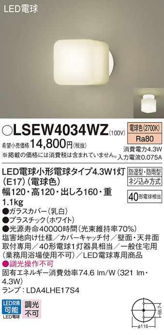 Panasonic ¥¨¥¯¥¹¥Æ¥ê¥¢¡¦¥¢¥¦¥È¥É¥¢ LSEW4034WZ