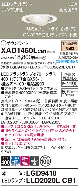 Panasonic ¥À¥¦¥ó¥é¥¤¥È XAD1460LCB1