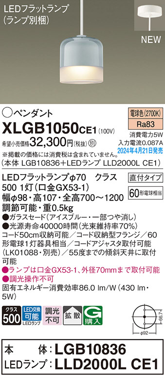 Panasonic ¥Ú¥ó¥À¥ó¥È¥é¥¤¥È XLGB1050CE1