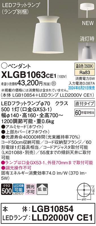 Panasonic ¥Ú¥ó¥À¥ó¥È¥é¥¤¥È XLGB1063CE1
