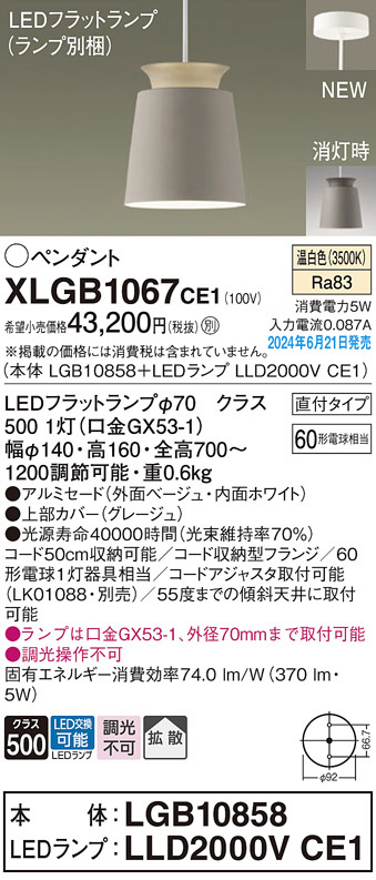 Panasonic ¥Ú¥ó¥À¥ó¥È¥é¥¤¥È XLGB1067CE1