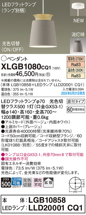 Panasonic ¥Ú¥ó¥À¥ó¥È¥é¥¤¥È XLGB1080CQ1