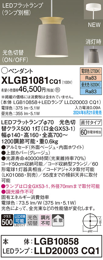 Panasonic ¥Ú¥ó¥À¥ó¥È¥é¥¤¥È XLGB1081CQ1