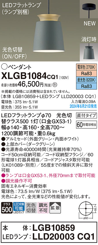 Panasonic ¥Ú¥ó¥À¥ó¥È¥é¥¤¥È XLGB1084CQ1